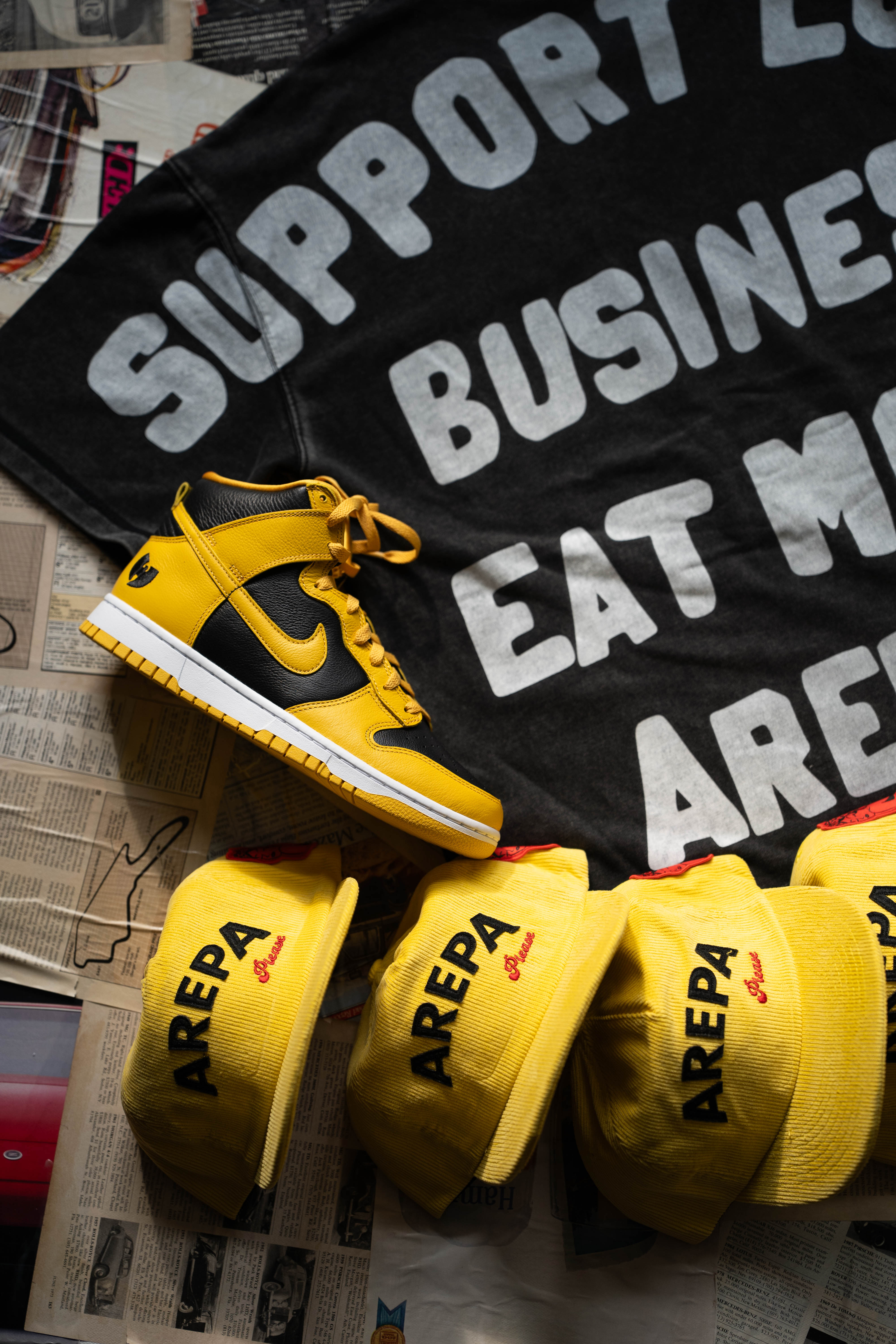 All sales are final. Due to the limited nature of our drops and the custom production process, we do not accept returns or exchanges. Please review your order details and sizing carefully before checkout. If you receive a damaged or incorrect item, please contact us immediately at sales@arepaplease.com.