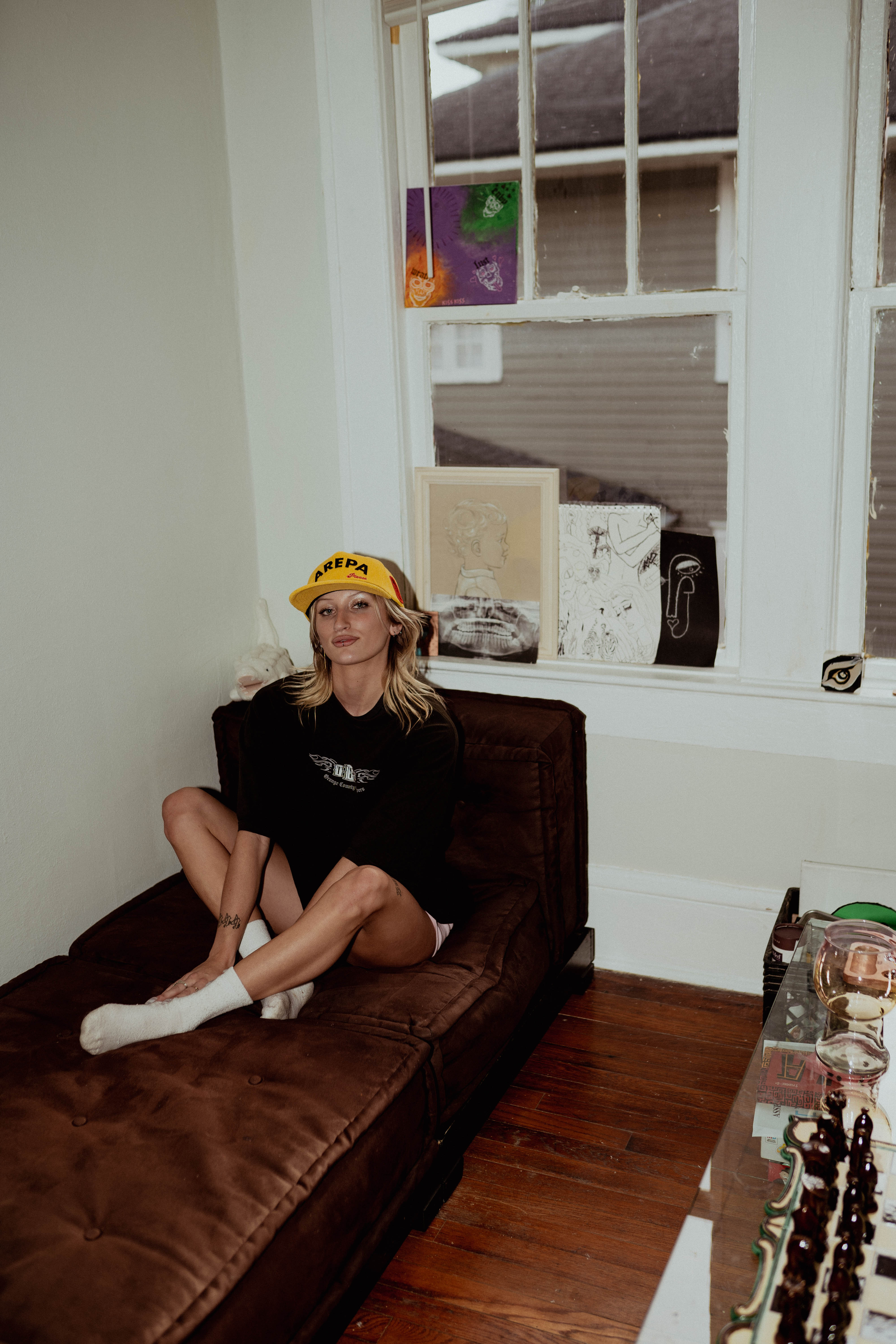 The A.P AMARILLO HAT is made of 100% cotton corduroy and features the AREPA please at front and the Arepa Please lady in red on the side