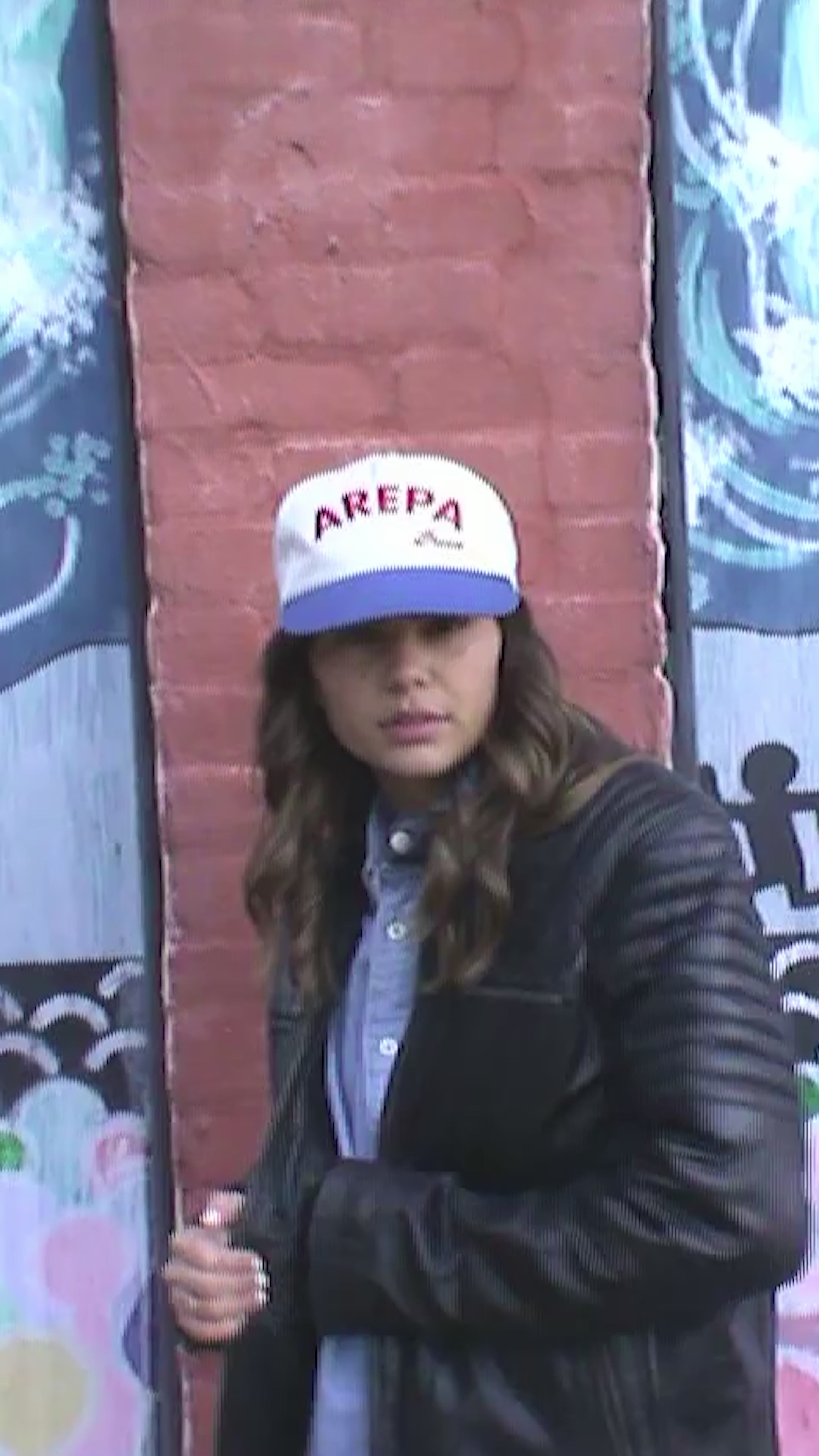 Vintage fit 5 panel hat with Arepa branding two tones and UV reactive material on the side logo that change color from white to blue under the sun