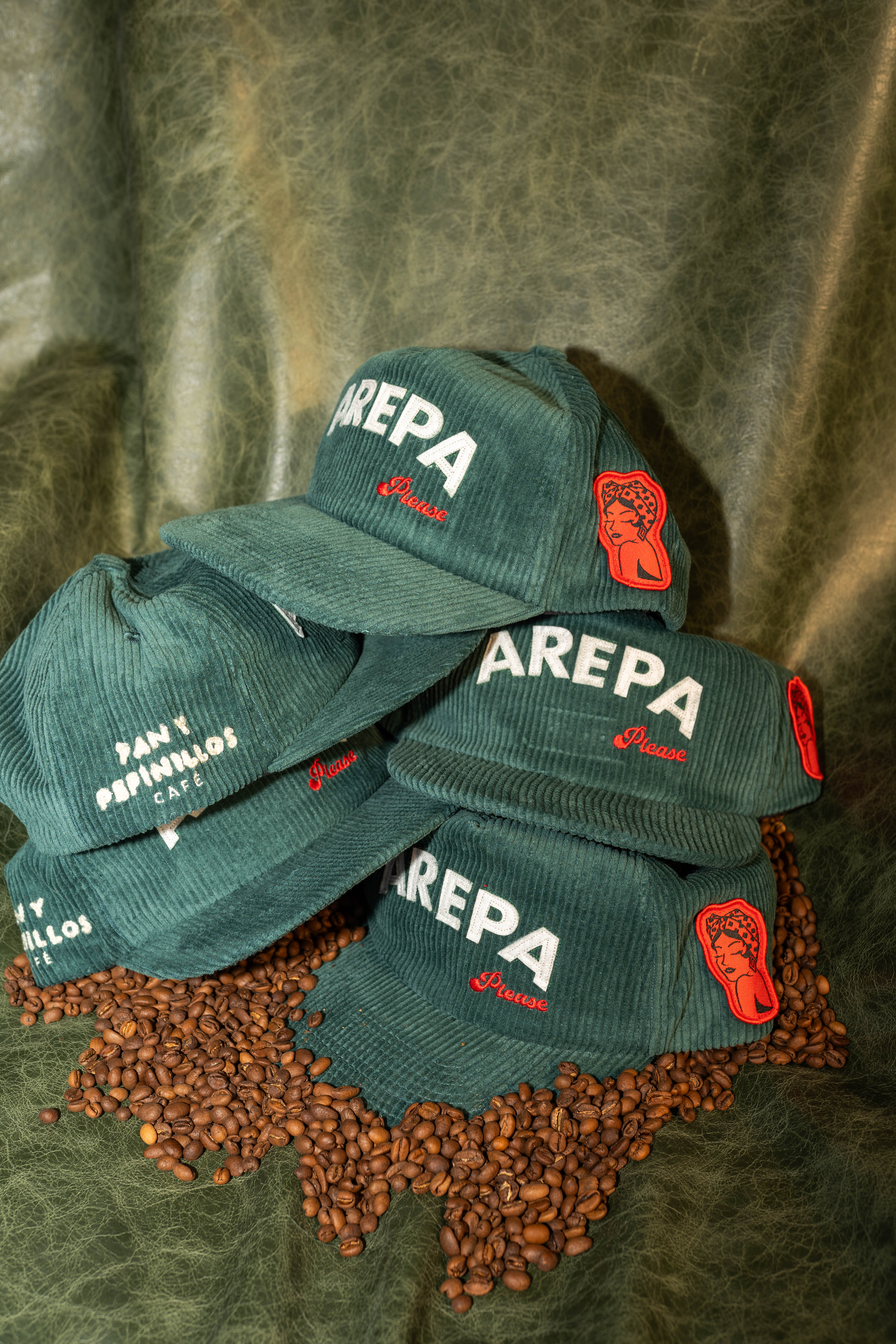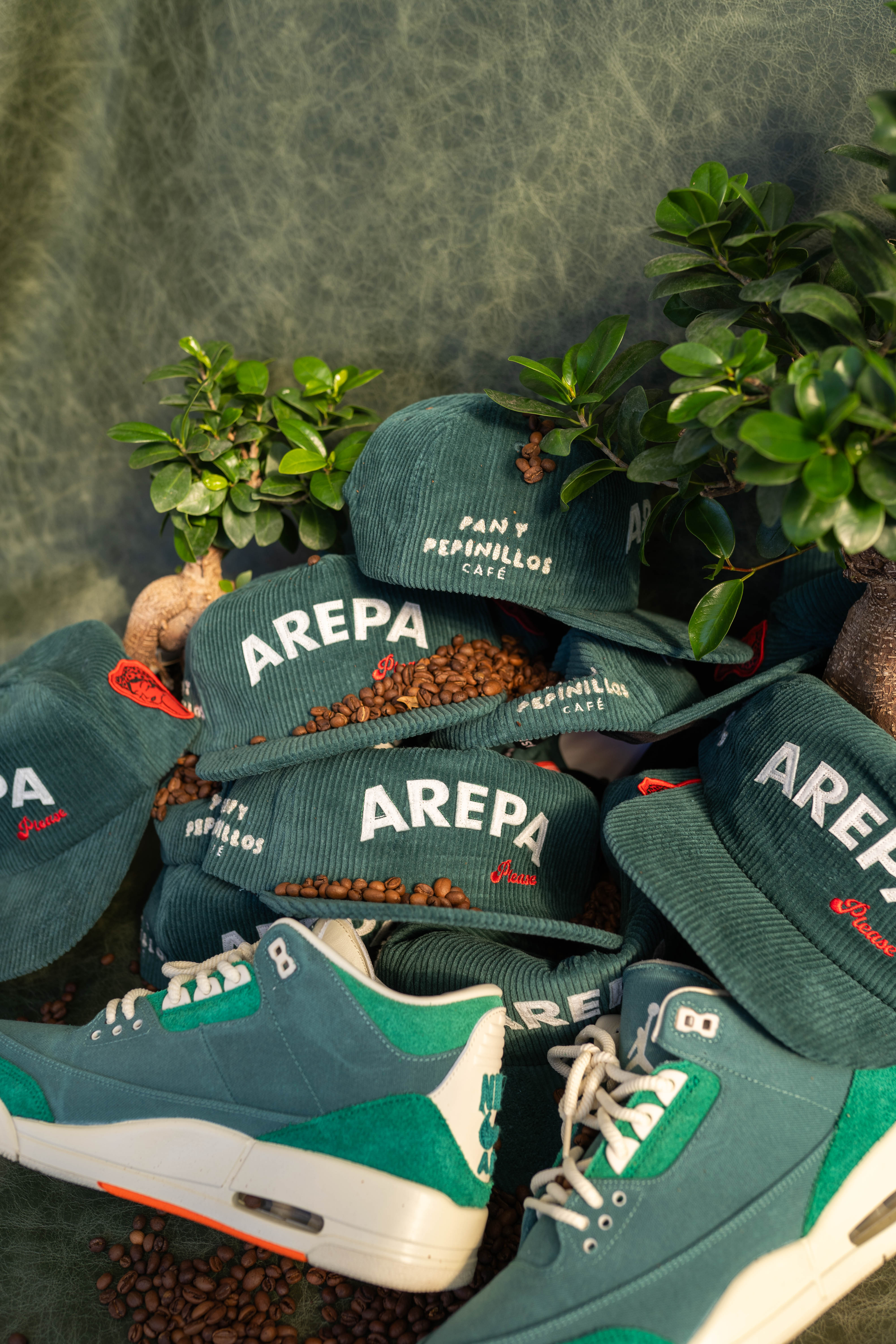 From Madrid to Jacksonville — a hat brewed in friendship. This green 5-panel unstructured cap blends the colors of Pan y Pepinillos Café, crowned Best Coffee in Madrid, with the flavor of Arepa Please. A collab born from two Venezuelan childhood friends turning their dream into drip.