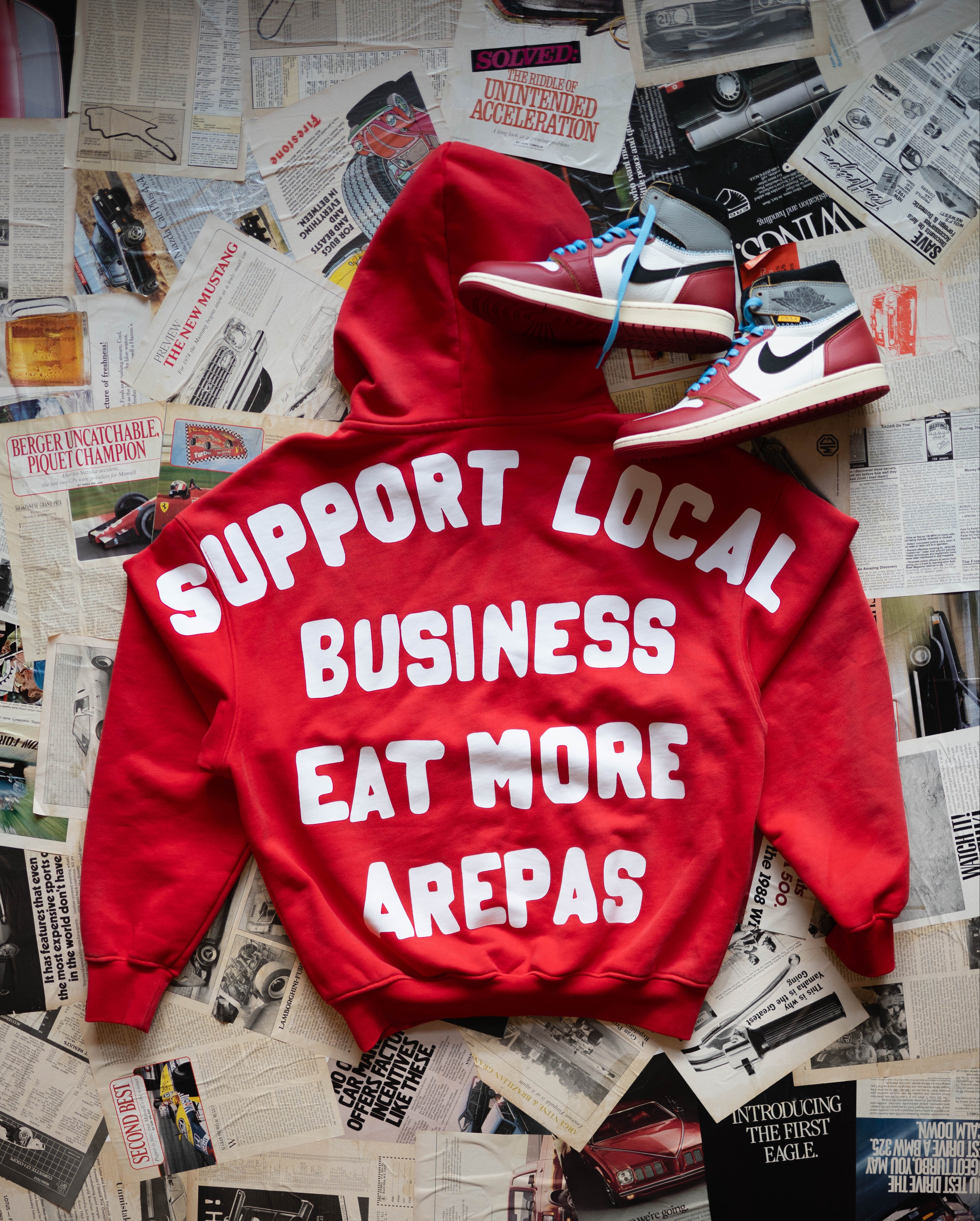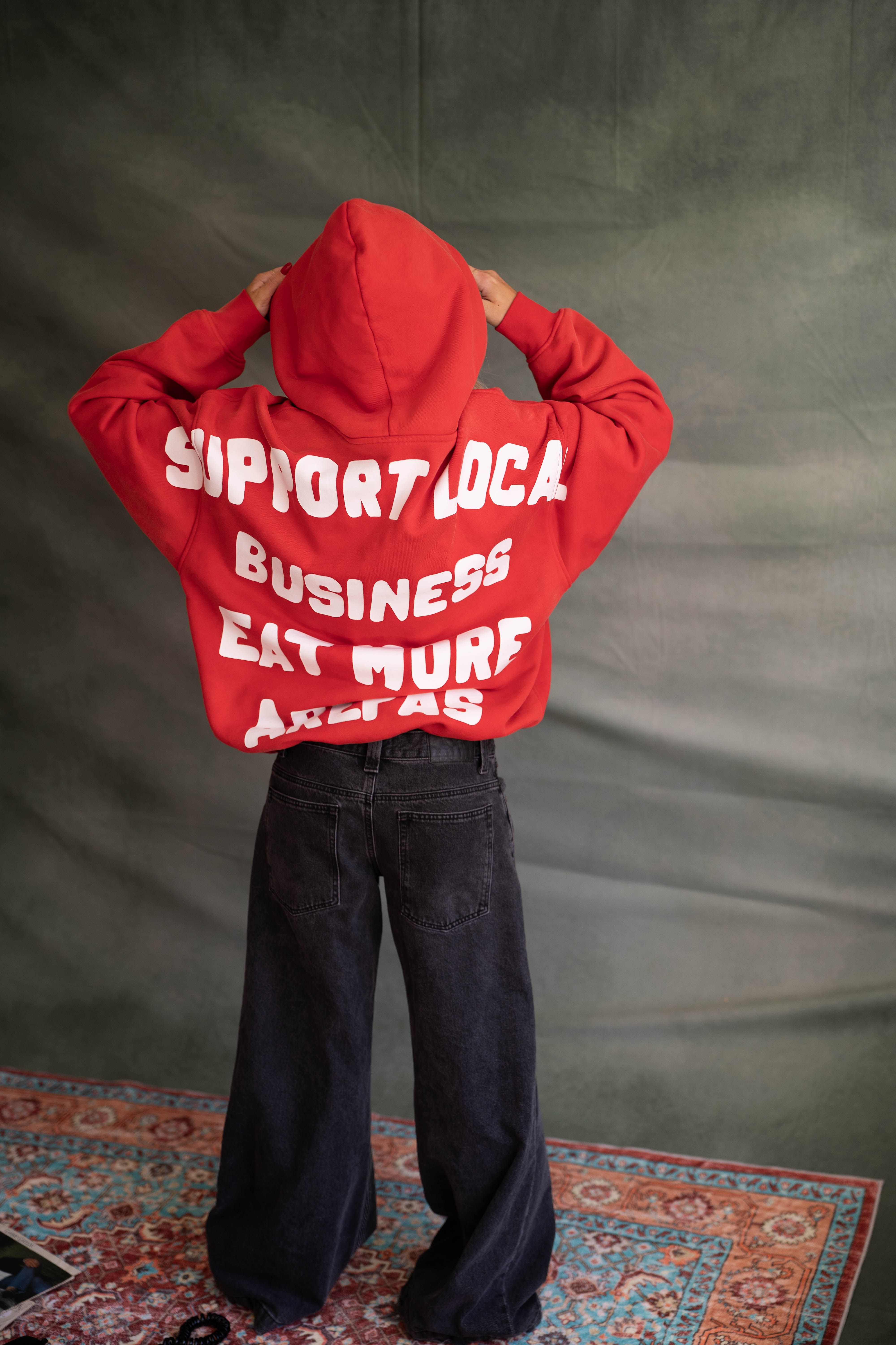 Rep your city and your food. The Support Local Hoodie brings heavyweight comfort with a statement that never goes out of style: eat more arepas